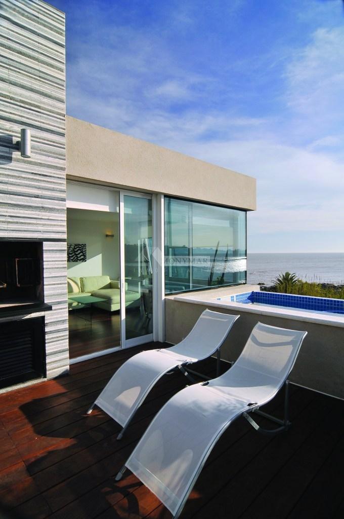 INMOBILIARIA MONYMAR.RAMBLA de MEXICO y COIMBRA ....CURVA DEL ENSUEÑO!! UN LUGAR ÚNICO PARA VIVIR FRENTE AL MAR CON LAS MEJORES VISTAS A LA BAHIA!! GRAN CATEGORÍA Y DE DISEÑO CONTEMPORÁNEO DONDE DESTACAN DETALLES ORIGINALES en PIEDRA, MADERA Y VIDRIO. EQUIPADA CON LINEA BLANCA. 2 PLANTAS. JARDIN AL FRENTE. Living con VISTA AL MAR, HOGAR y acceso a amplia TERRAZA con PARRILLERO Y PISCINA, comedor con HOGAR, baño social y cocina. 3 DORMITORIOS (principal en suite con vestidor), 2 baños completos, ESCRITORIO, SERVICIO COMPLETO. COCHERA PARA 4 AUTOS. CALEFACCIÓN LOSA RADIANTE ELÉCTRICA, HOGAR y SPLITS. ALARMA. VIDRIOS CON LAMINA DE SEGURIDAD.