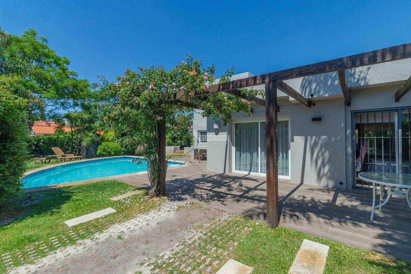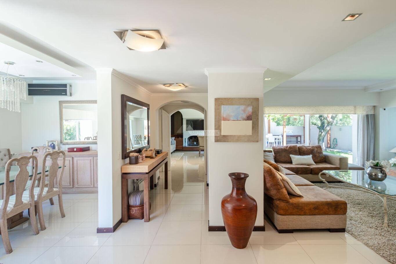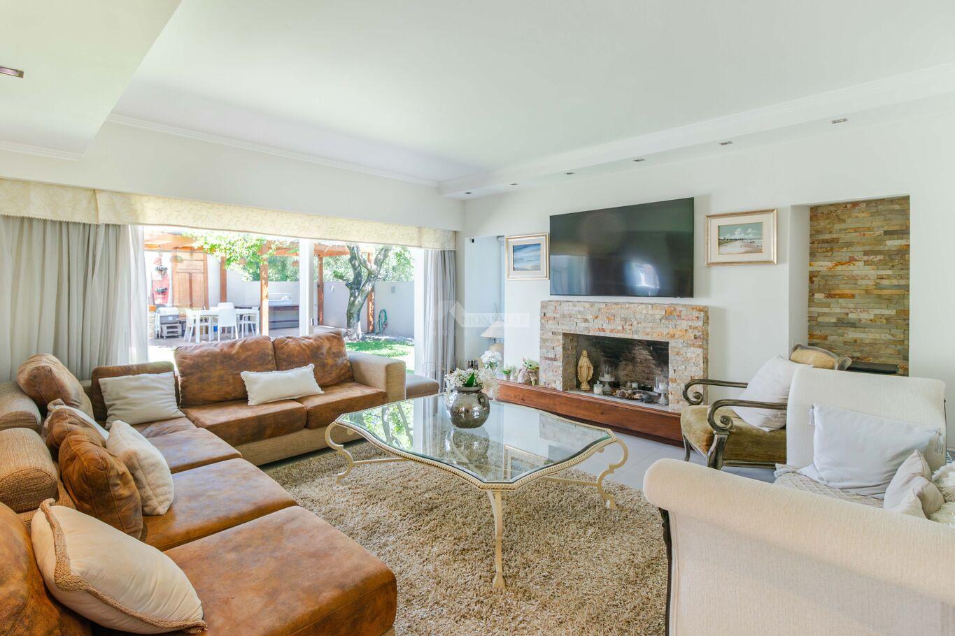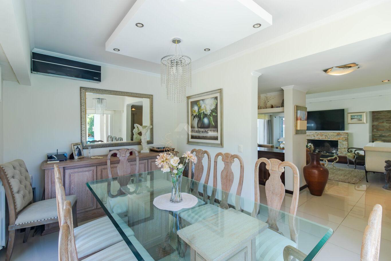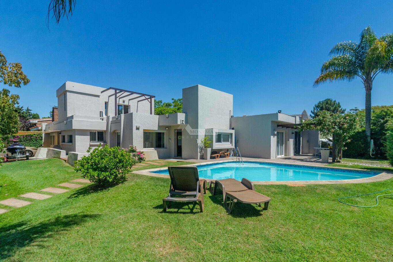 INMOBILIARIA MONYMAR -LIEJA..... PRIVILEGIADA UBICACIÓN EN CARRASCO PROXIMA CLUB NAVAL... SOBERBIA CASA MEJOR QUE A ESTRENAR!!...PADRON UNICO EN 2 PLANTAS... Jardín al frente con rejas y porton electrico. PLANTA BAJA: Living y comedor con ESTUFA A LEÑA, ESCRITORIO, baño social, 3 DORMITORIOS (1 en suite), ESTAR definido con ESTUFA A LEÑA. Cocina con placares aéreos y bajo mesada, lavadero. PLANTA ALTA: 1 DORMITORIO EN SUITE con vestidor y salida a AMPLIA TERRAZA con DECK. Fondo verde con PARRILLERO y PISCINA CLIMATIZADA. GARAJE PARA 3 AUTOS. Calefacción central a gas. Riego automático.