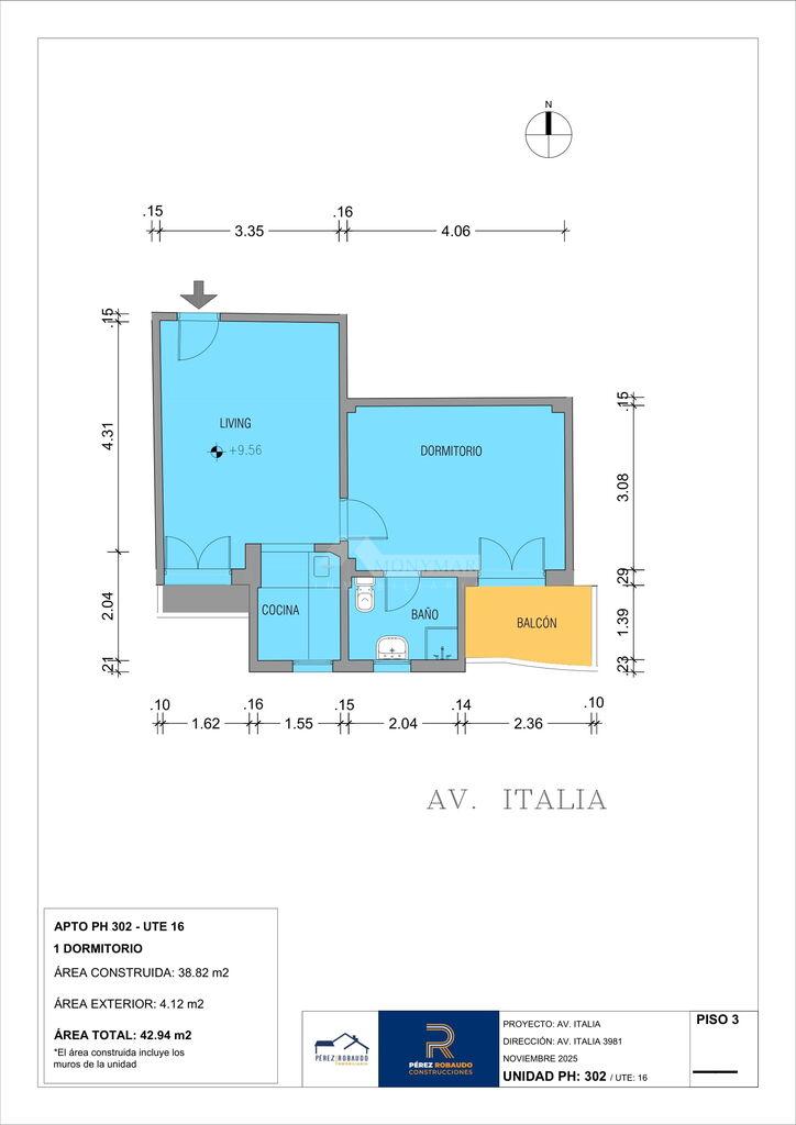 METRAJES: 38,82m2 área propia + 4,12m2 terrazas = 42,94m2 totales.