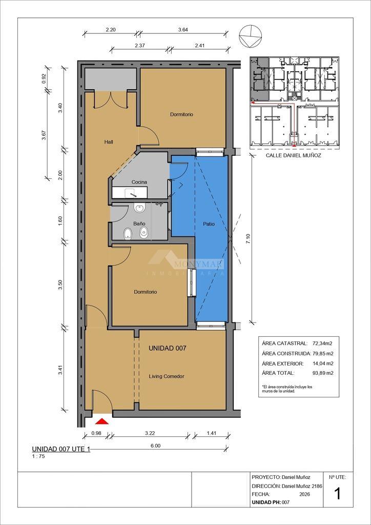 007 - 010) 79,85m2 área propia + 14,04m2 Patio = 93,89m2 Totales.