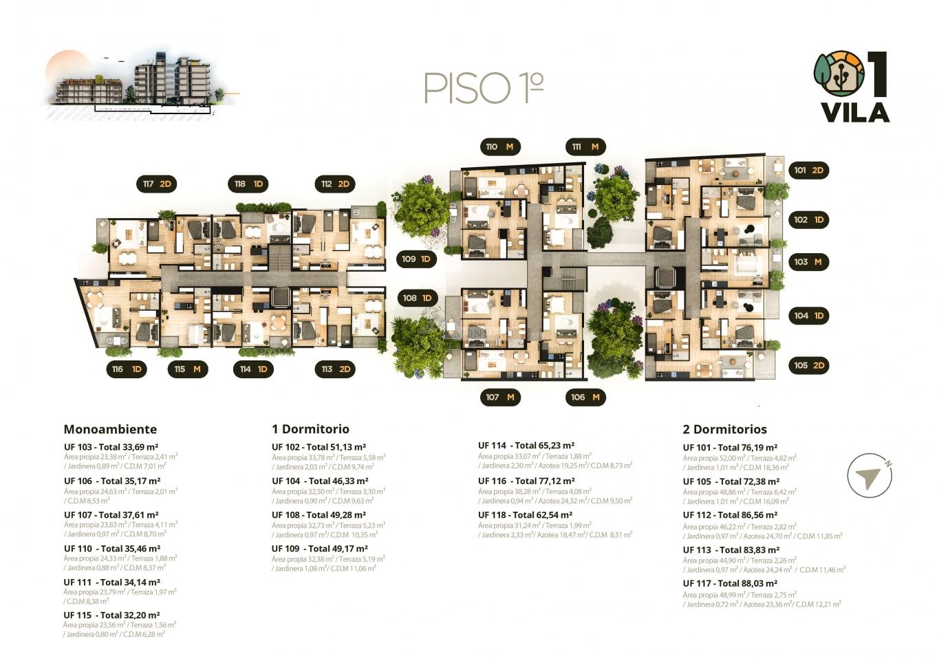 - INMOBILIARIA MONYMAR -BRITO FORESTI Y BELGRANO... 01 VILA... A PASOS DE AVENIDA ITALIA Y AVENIDA CENTENARIO.... PRÓXIMO A CENTROS DE SALUD Y FACULTAD DE ODONTOLOGÍA... Proyecto con 3 bloques independientes enlazados por patios verdes (cuatro jardines interiores y un jardín frontal). Block Principal sobre Brito Foresti cuenta con 5 pisos, Block Central con 5 pisos y Block Posterior con 2 pisos. ESTA UNIDAD ESTÁ UBICADA AL FRENTE DE BLOCK POSTERIOR.... A ESTRENAR ... CONTRAFRENTE. Living comedor con salida a TERRAZA, 2 DORMITORIOS, 1 baño completo, cocina integrada con placares bajo mesada. TERRAZA DE USO EXCLUSIVO en AZOTEA. Previsión para aire acondicionado. El edificio cuenta con CCTV, BIKE PARKING, JARDIN FRONTAL, JARDINES INTERNOS, ÁREAS DE ENCUENTRO, BIKE PARKING y CO-WORKING en planta baja. Cuenta además con PARRILLEROS SEMICUBIERTOS, CO-LIVING integrado con TERRAZA EXTERIOR, HUERTA ORGÁNICA COLABORATIVA, WET SPA con SOLARIUM, LAUNDRY con TENDER, ÁREA DE SERVICIOS en la azotea.