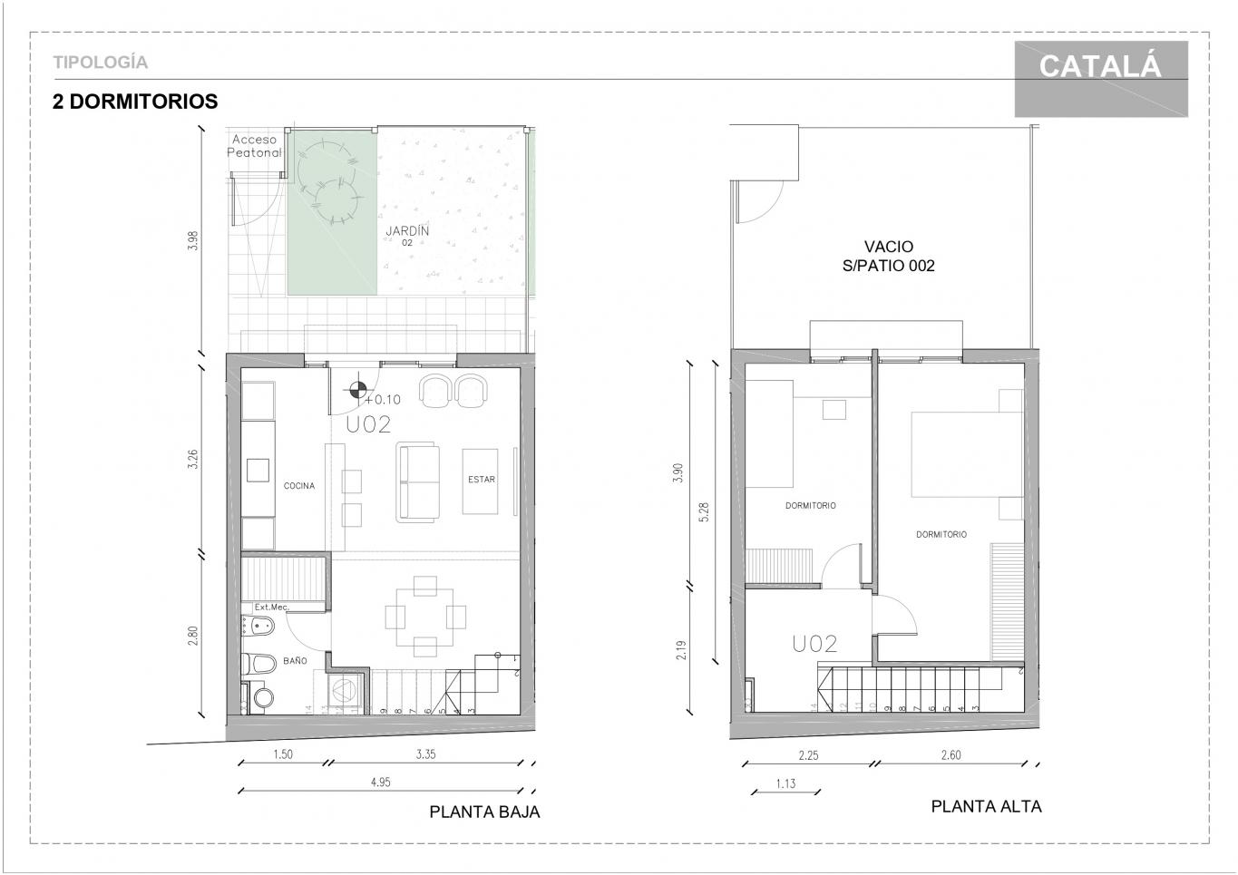 METRAJE: 60m área propia + 25m jardín = 85m Total.