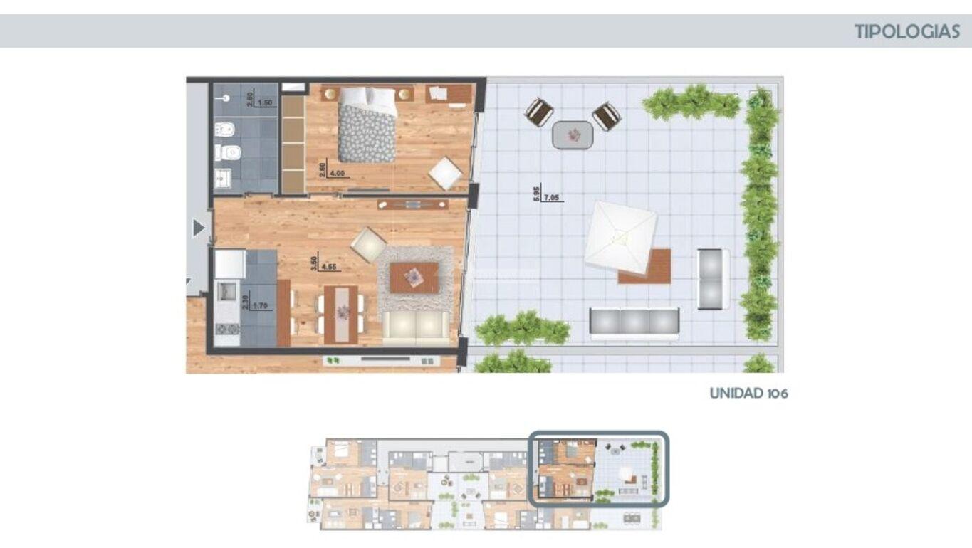 - INMOBILIARIA MONYMAR -RIVERA Y ROSELL Y RIUS... EDIFICIO VILLA DEI FIORI... EXCELENTE UBICACION EN POCITOS PRÓXIMO A MONTEVIDEO SHOPPING Y EL WTC... A ESTRENAR ... al Contrafrente... Living comedor con cocina integrada con muebles aéreos y bajo mesada, campana de extracción, salida a PATIO de uso exclusivo de 44m2 aproximadamente, 1 DORMITORIO con placard, salida a PATIO. 1 BAÑO completo. El edificio cuenta con GIMNASIO, BARBACOA, LAUNDRY. Local comercial en planta baja. GARAJES OPCIONALES.